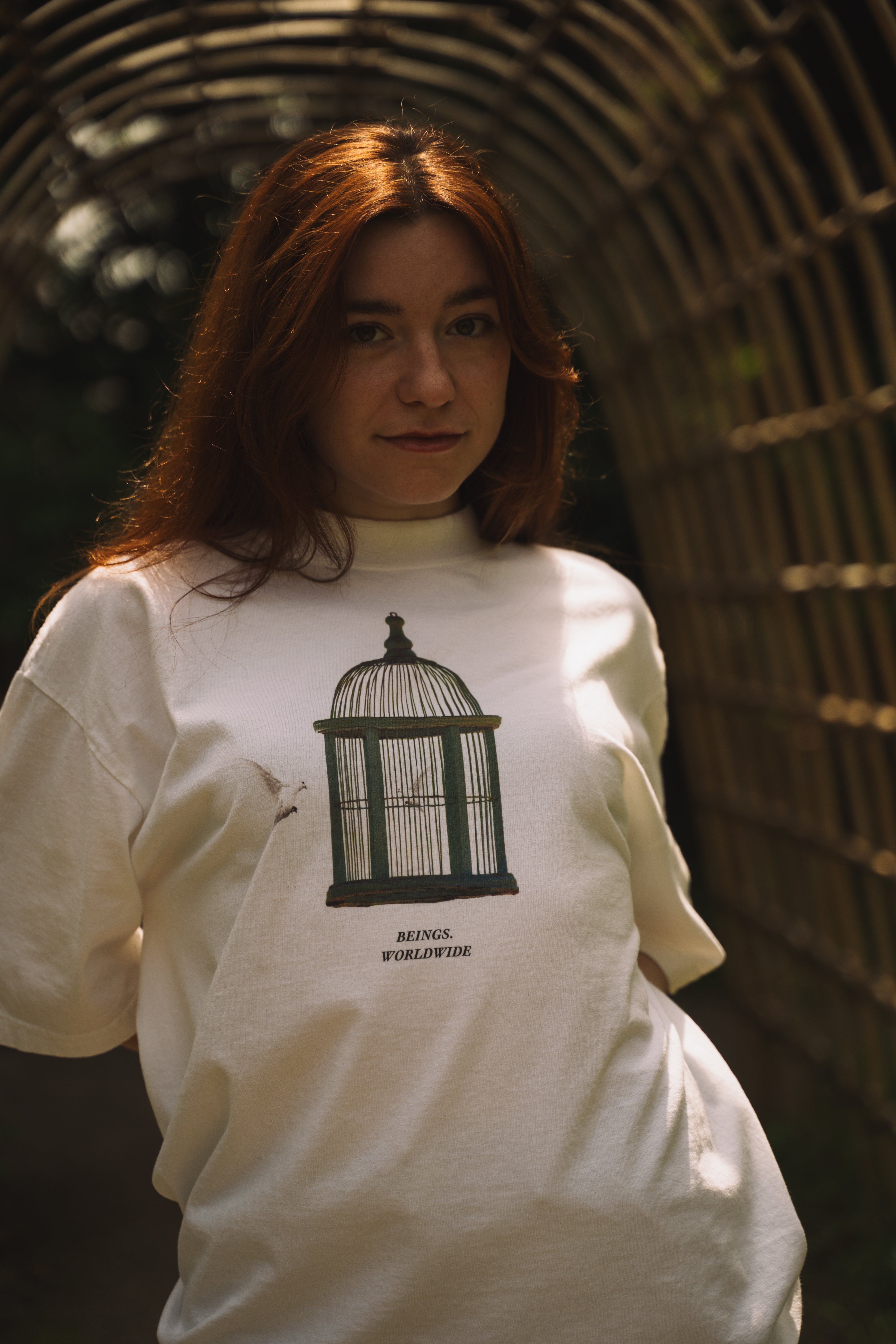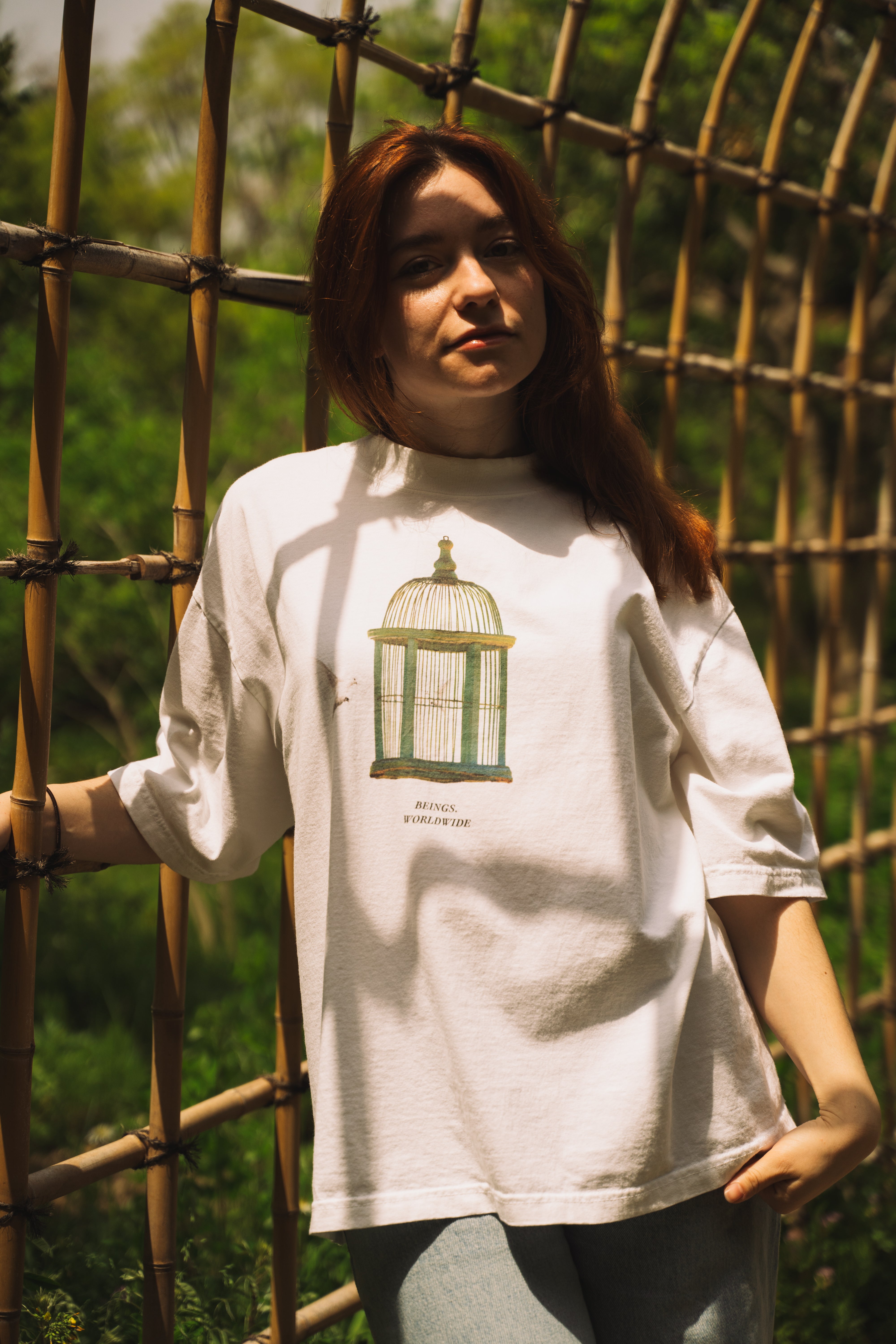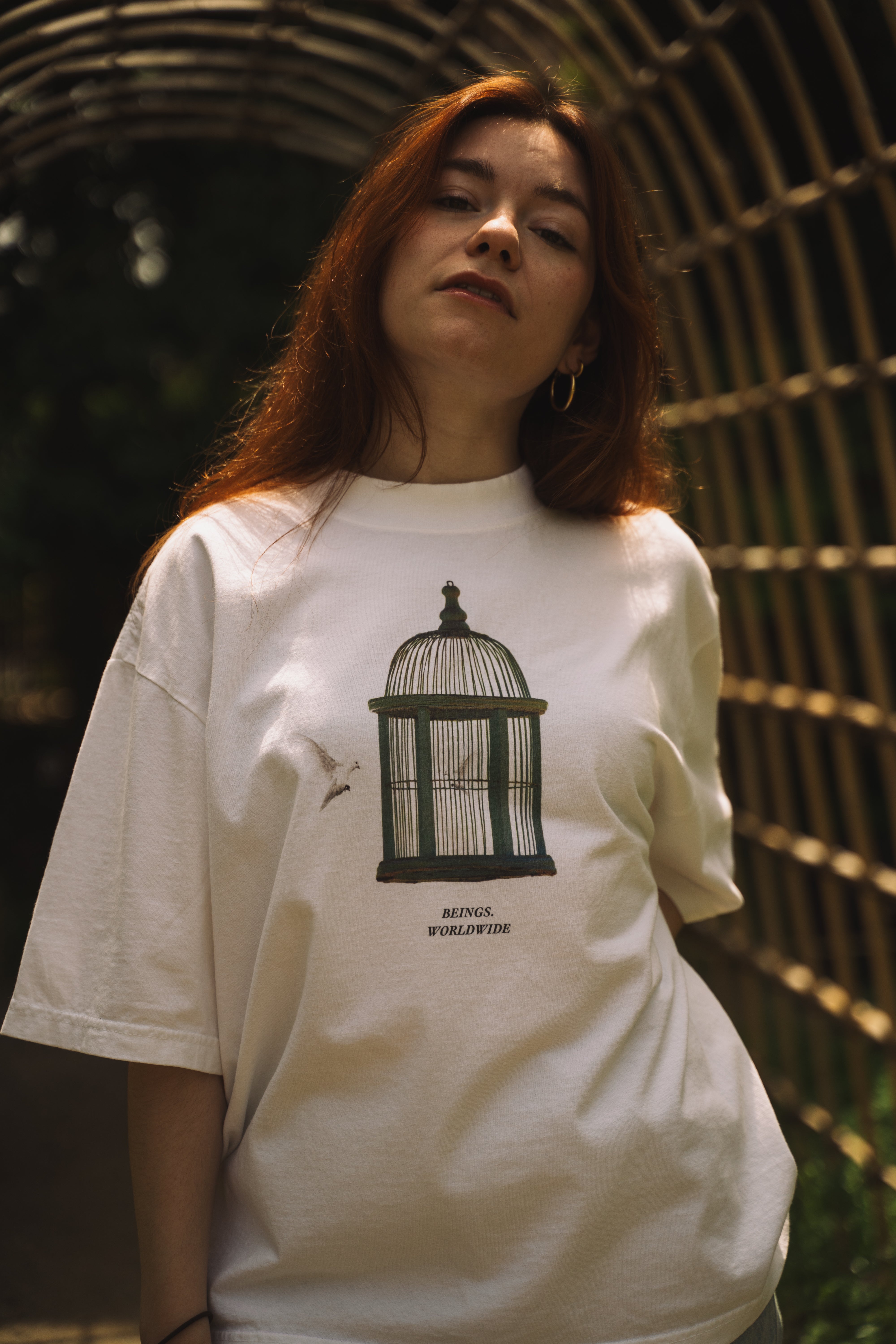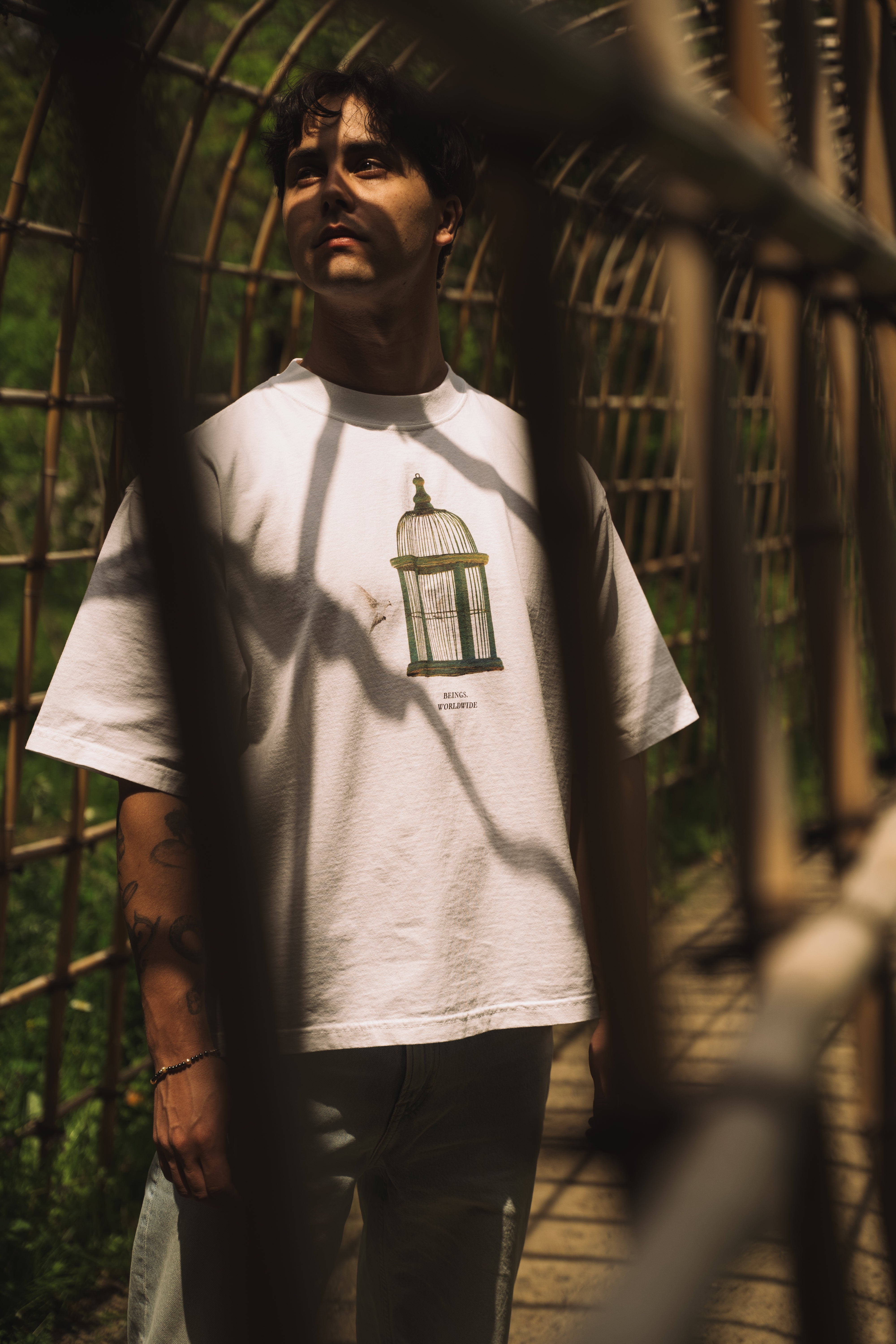 Have you ever felt stuck in a toxic relationship? Toxic workplace? Surrounded by toxic people and friends perhaps? I'm sure a lot of us deal with toxicity at some point in our lives. The "Caged Bird" tee represents being stuck dealing with that toxicity and feeling hopeless. But also finding freedom, growth and happiness outside of the "cage" which represents the toxicity. So the dove inside the cage is the present "You", someone who may be dealing with something toxic. And the one outside is the future "You" where you appear larger since you grow by leaving behind that toxicity. The dove is also looking back at the dove inside the cage as part of "reflecting on how far you have come".