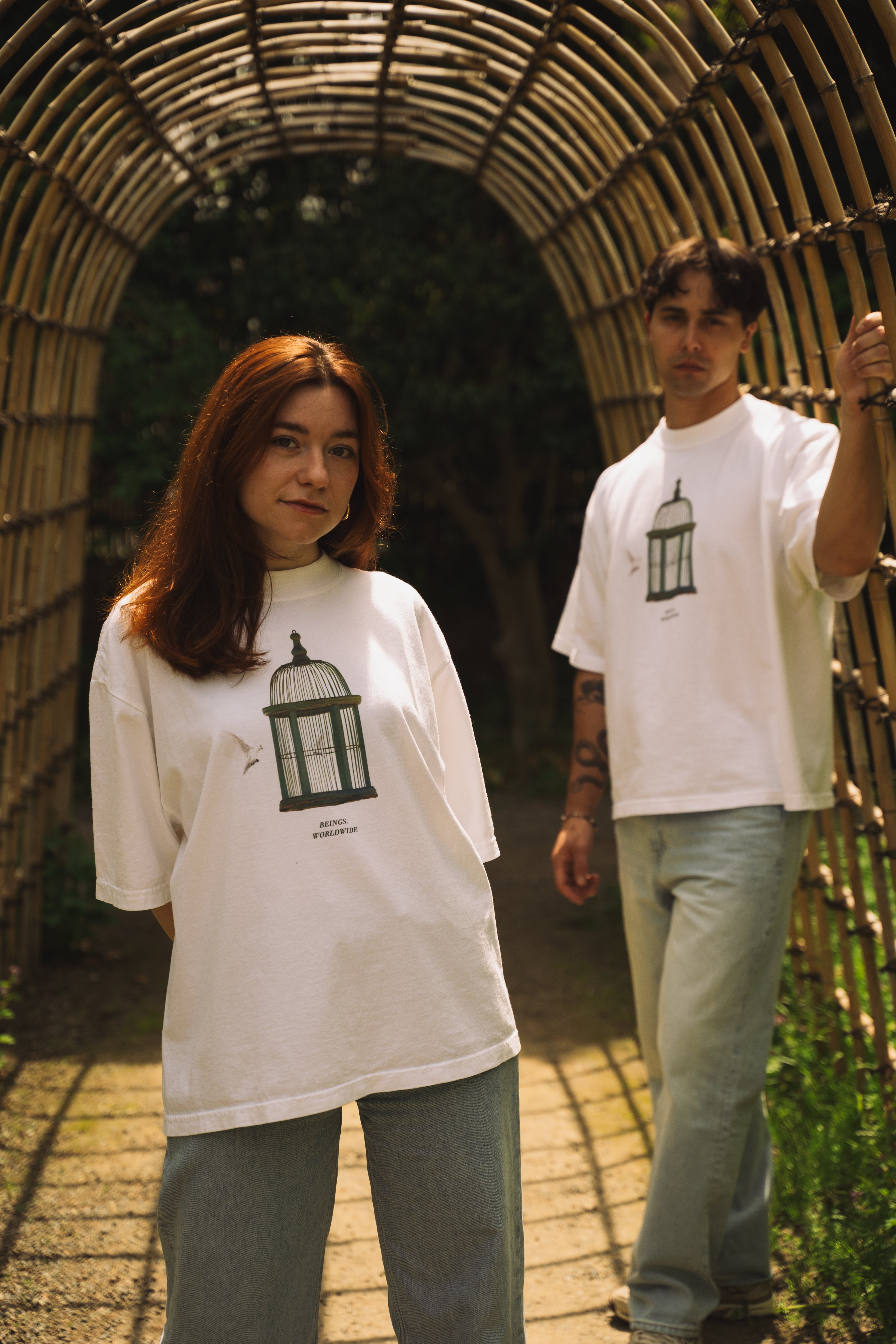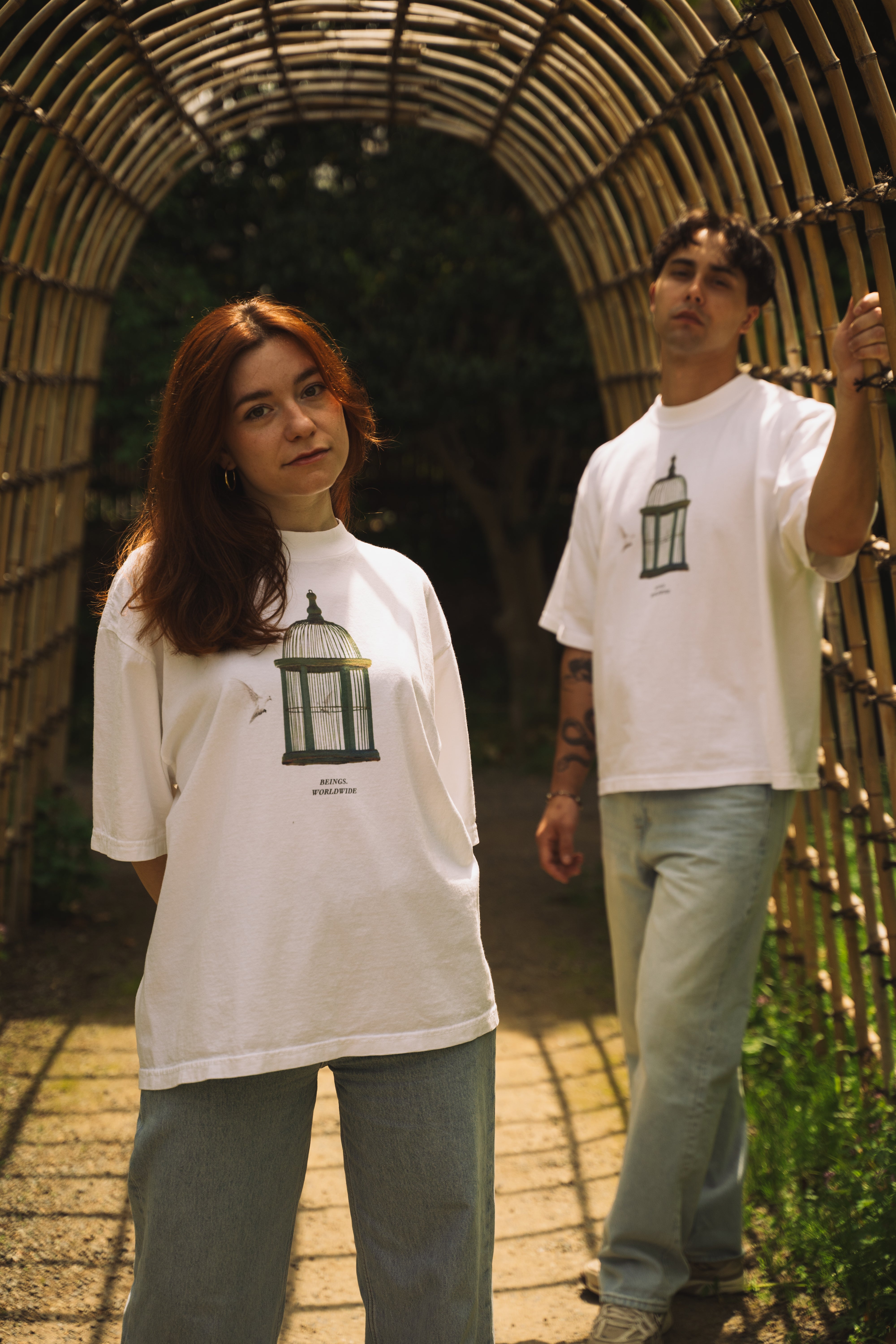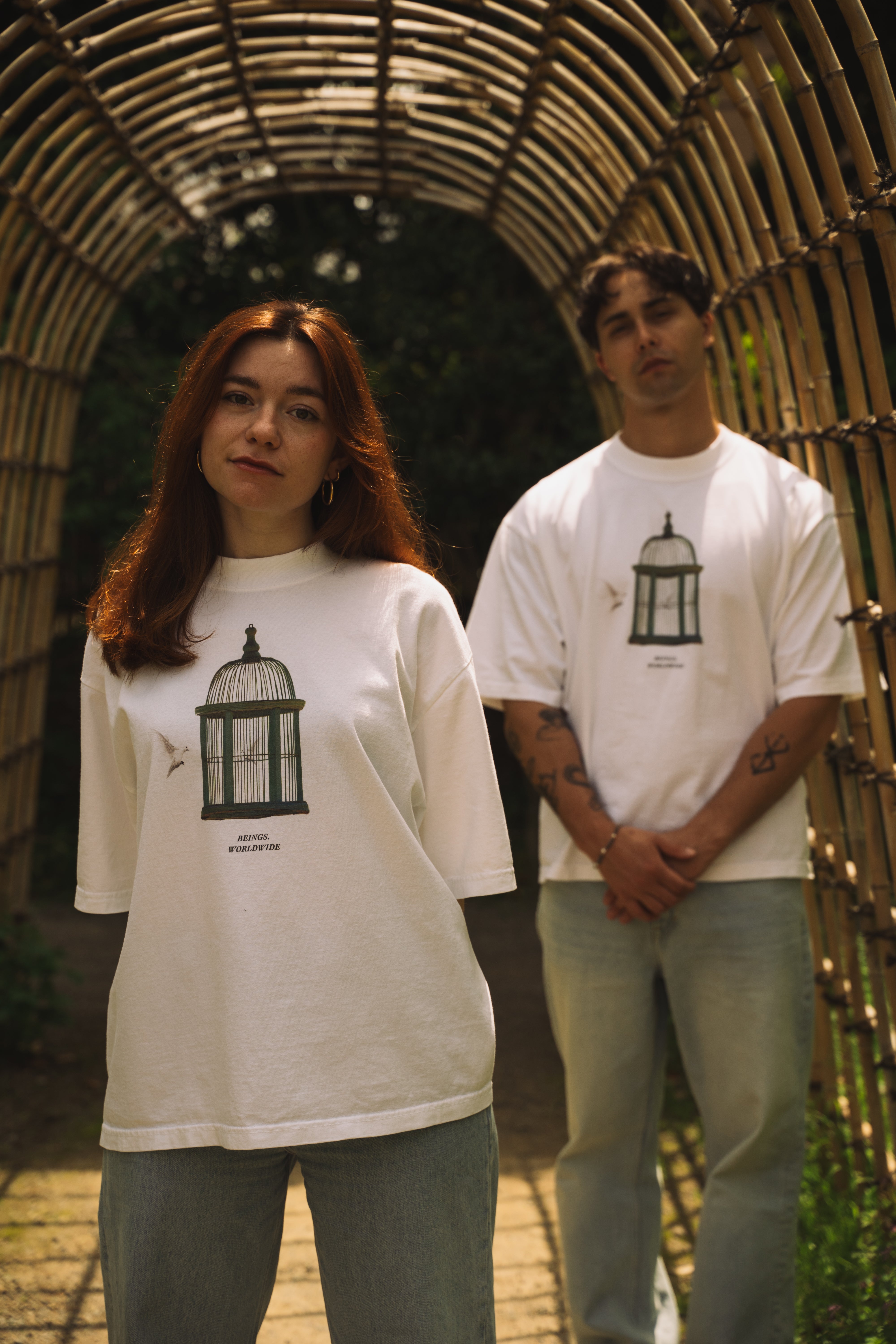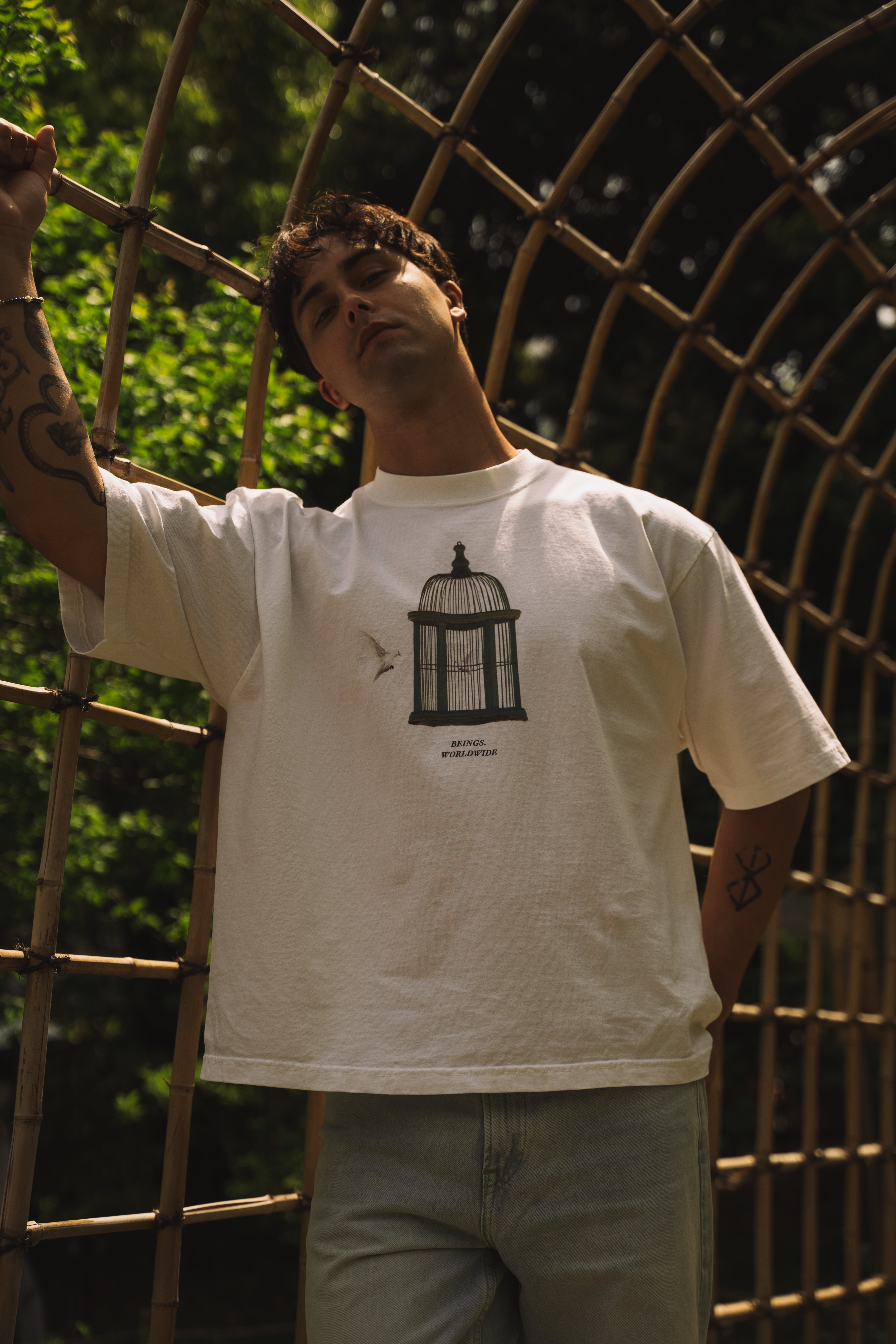 Have you ever felt stuck in a toxic relationship? Toxic workplace? Surrounded by toxic people and friends perhaps? I'm sure a lot of us deal with toxicity at some point in our lives. The "Caged Bird" tee represents being stuck dealing with that toxicity and feeling hopeless. But also finding freedom, growth and happiness outside of the "cage" which represents the toxicity. So the dove inside the cage is the present "You", someone who may be dealing with something toxic. And the one outside is the future "You" where you appear larger since you grow by leaving behind that toxicity. The dove is also looking back at the dove inside the cage as part of "reflecting on how far you have come".